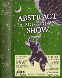 This is sci-comm like you’ve never seen it! Two clowns (Sphagnum & Professor Moss) have very different communication styles which lead to theatrical chaos as they present a lecture on Asian Elephants. In this hilarious all ages performance- science and theatre are fused together to explore artistic expressions of scientific data- all using an old school overhead projector. This is a work-in-progress showcase of this new piece of environmental theatre by Logan Robins with support from the Creature Conserve Mentorship Program and support from Arts Nova Scotia”.