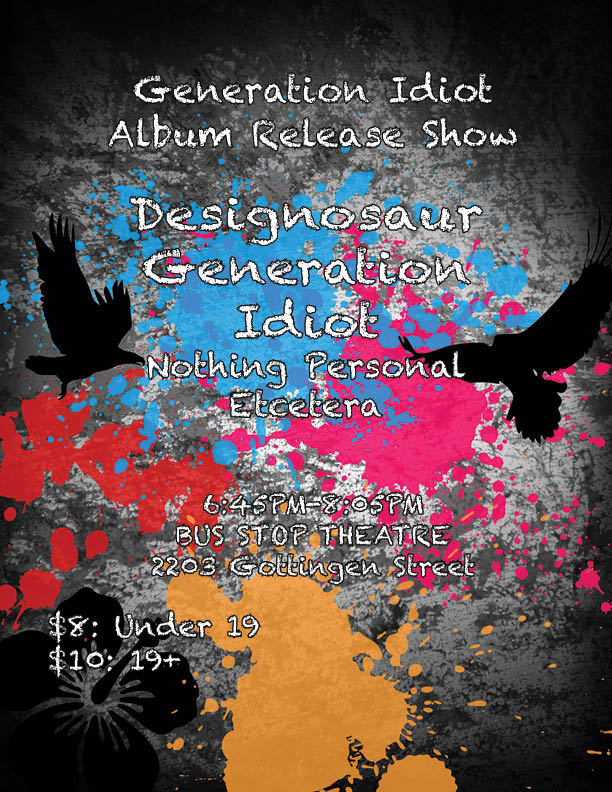 Come on out to check out GENERATION IDIOT’S RELEASE SHOW for their FIRST ALBUM JUST ANOTHER OUTCASTS! Acts in clude DESIGNGOSAUR, GENERATION IDIOT, NOTHING PERSONAL and ETCTERA. 1st 5 people at the door get a free copy of the album!! Admission is $8 for anyone under 18 and $10 for 18 and up.