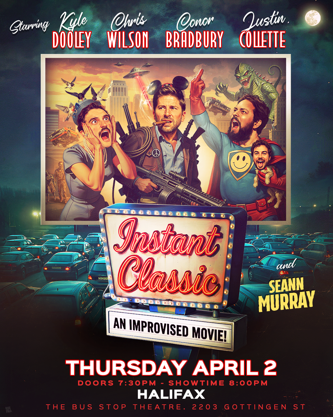 Join powerhouse improvisers — Kyle Dooley (Picnicface), Conor Bradbury (Second City, Sex T. Rex),Justin Collette (Beetlejuice!) and Chris Wilson (This Hour Has 22 Minutes)— as they create a hilarious, completely improvised movie live on stage.
